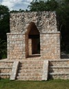One of the largest restored buildings in Ek Balam is La Torre. The base of La Torre is extremely large measuring over 500 feet long and approximately half as wide and nearly 100 feet tall. The impressive La Torre can be climbed allowing you to get a close up view of the stucco work lying beneath each thatched roof. Just about at the top you will find a Chenes style serpent mouth doorway which is intricately carved from eyebrows to molars. You will find some of the best restoration work on the most intricate carvings on the La Torre.